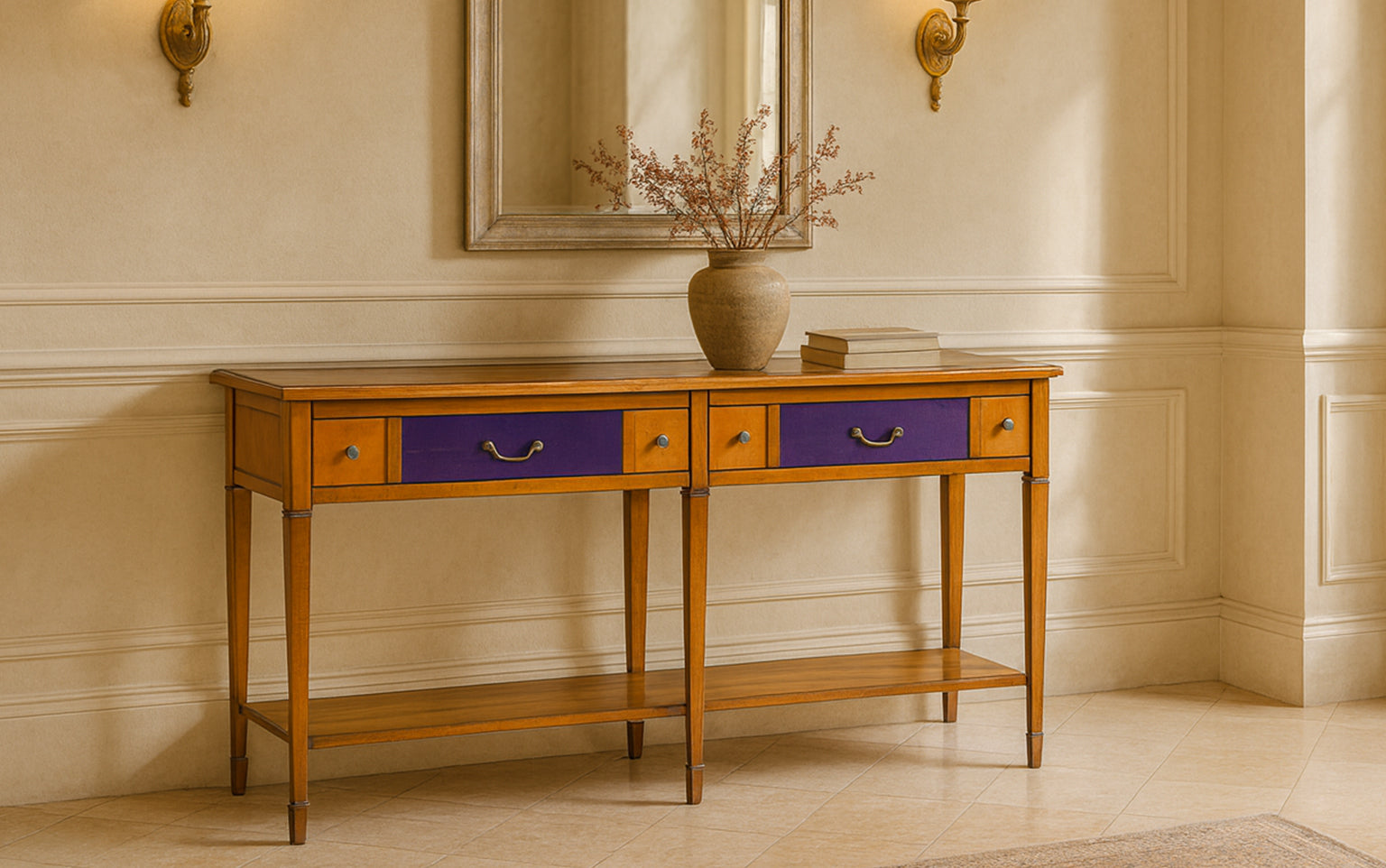 New Grange: Der Directoire-Stil, inspiriert von der turbulenten Zeit der Französischen Revolution, verströmt eine Atmosphäre klassischer Grandezza, vermischt mit einem Hauch Avantgarde. Es ist eine Epoche, die sich durch klare Linien, Symmetrie und ein Gefühl zeitloser Schlichtheit auszeichnet.