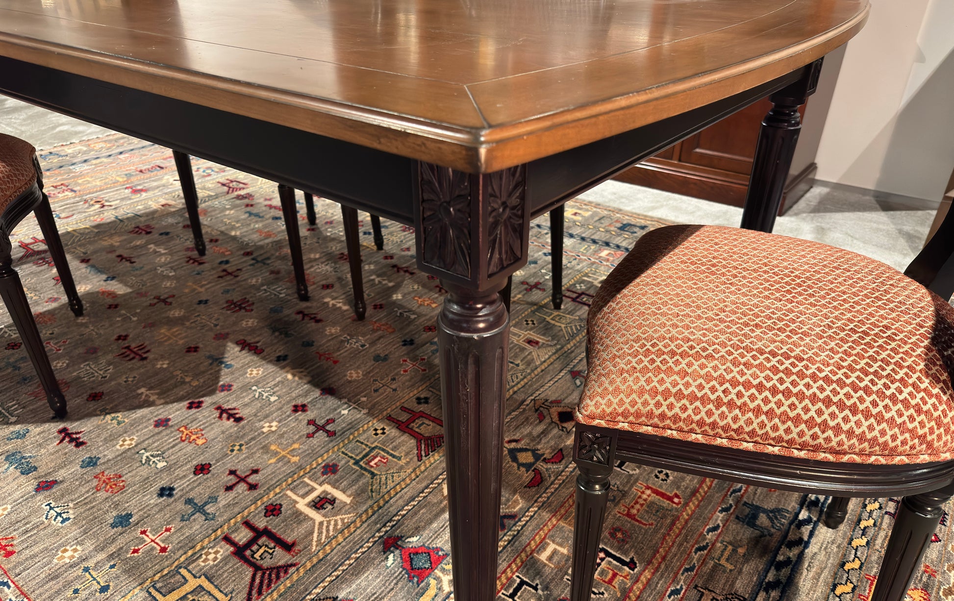 Laat uw eetkamer stralen met de unieke charme van de Rechte Eettafel Ermitage uit de Ermitage collectie van New Grange. Deze prachtige tafel, vervaardigd uit hoogwaardig kersenhout, ademt een sfeer van warmte en verfijning dat uw interieur een eigenzinnige uitstraling geeft.
