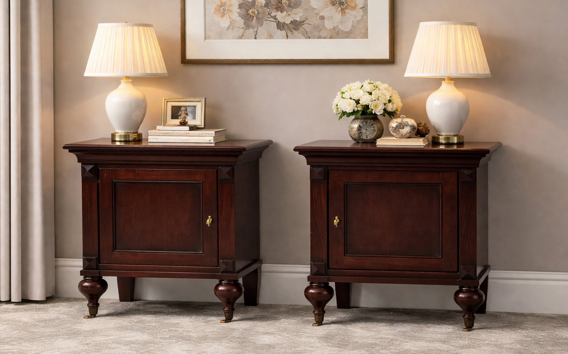 Deze Indochine nachtkastjes combineren klassieke elegantie met warm, donker hout. De verfijnde details en het tijdloze ontwerp zorgen voor een rustige, luxe uitstraling. Praktisch en stijlvol, perfect passend bij het Indochine bed en een harmonieuze slaapkamerinrichting.