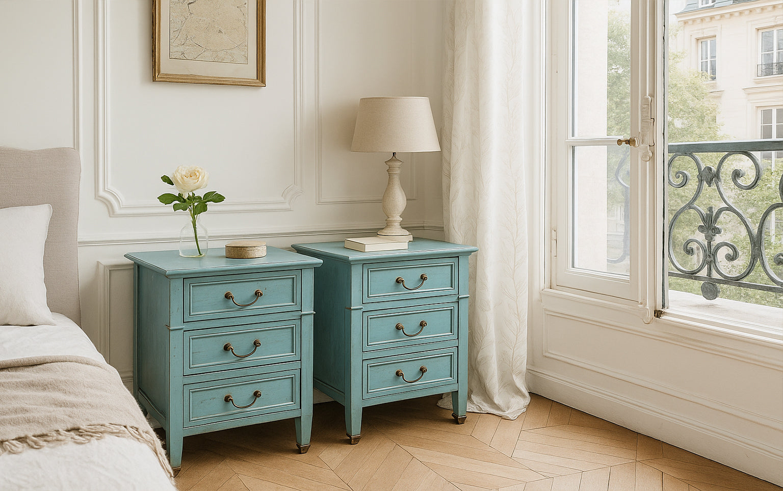 Deze Directoire-stijl nachtkastjes stralen ingetogen Franse elegantie uit, kenmerkend voor het einde van de 18e eeuw.