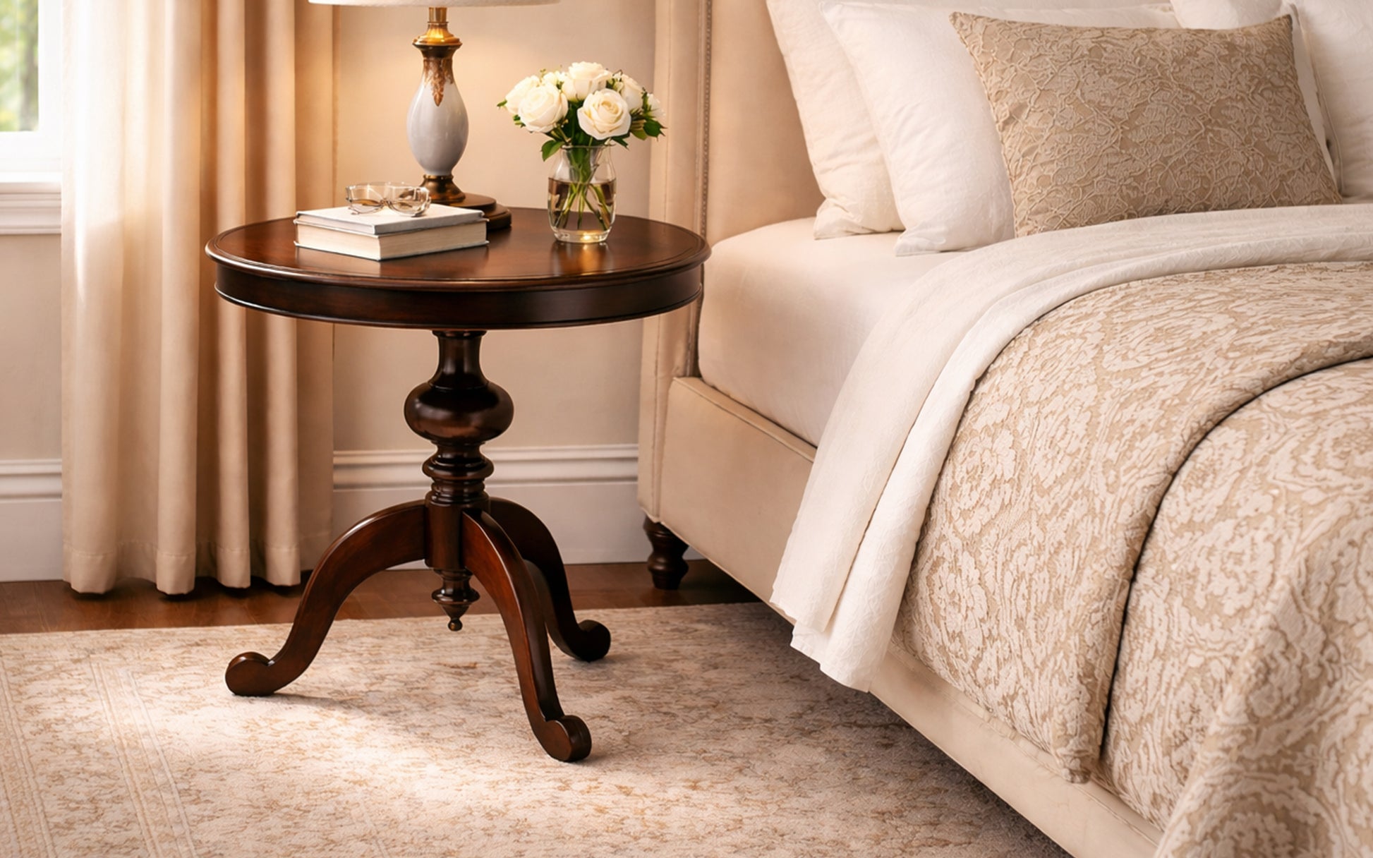 Dit Indochine tafeltje straalt verfijnde eenvoud en warmte uit. Het ronde blad en de sierlijke poot geven het meubel een klassiek, elegant karakter. Ideaal als nachttafel of bijzettafel, en een stijlvolle aanvulling op een sfeervol Indochine interieur.